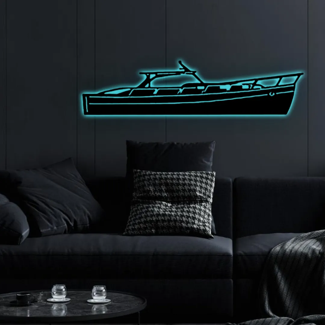 Sail away into style with Sneagear’s Yacht Silhouette. This luxe weatherproof metal wall decor, featuring LED RGB lighting, captures a sophisticated nautical vibe. Perfect for coastal homes or any space where you want to add a touch of adventurous high-seas dreams – INSTALL IT IN NO TIME!