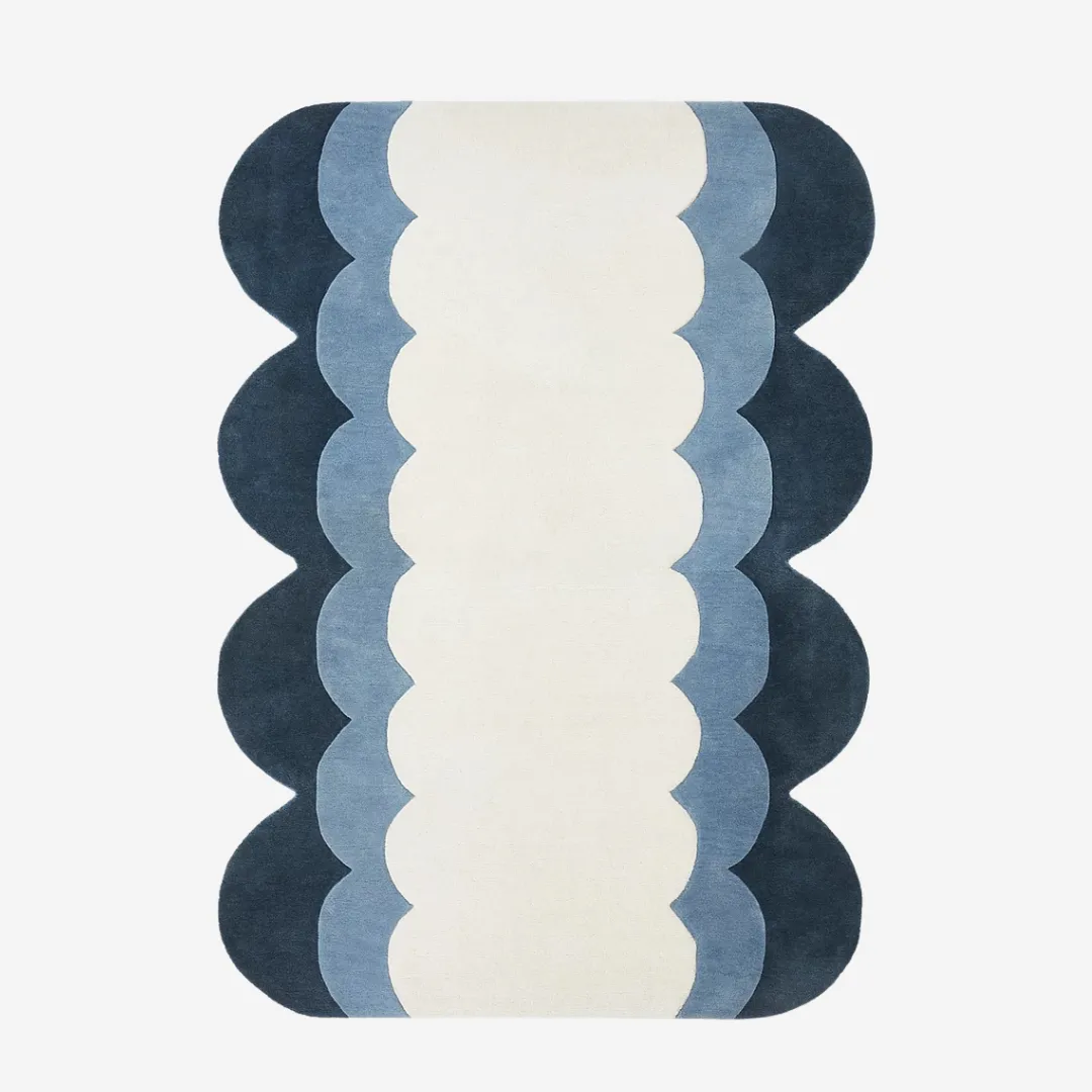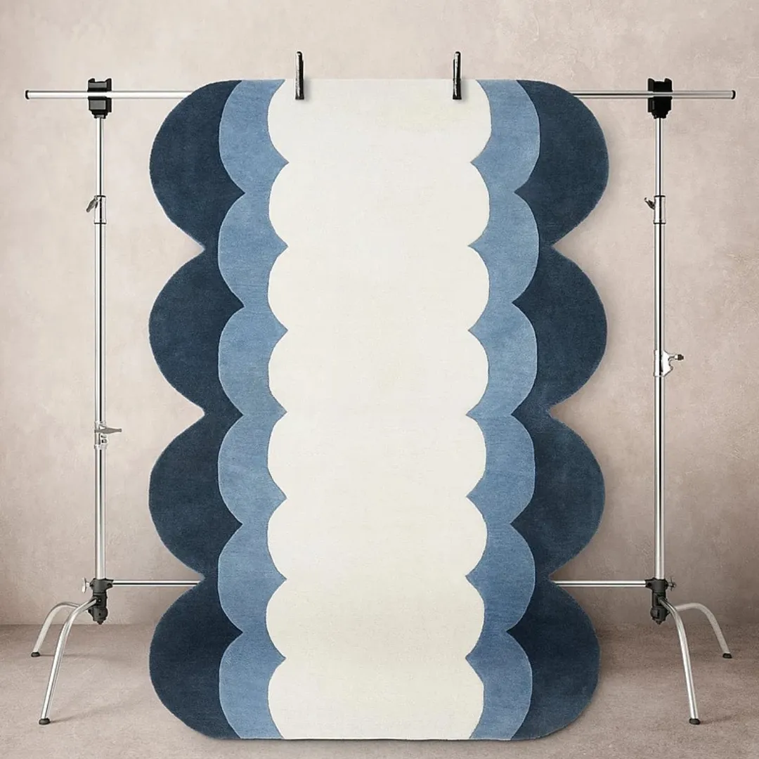 The Ocean Layered Curve Runner Rug brings the peace of the water right into your room. Its flowing, scalloped form uses layered tones of cream, sky blue, and deep navy that dissolve naturally from light to dark. Any small space will be in peace if this subtle gradient reminds one of waves and ocean. Ideal for contemporary homes that appreciate simple form and subdued colour palette.Key Features of Ocean Layered Rug