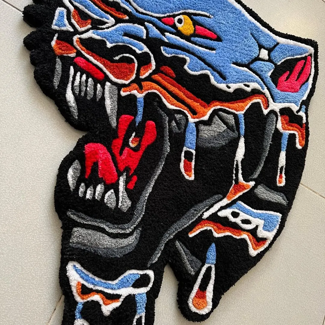 Here are some key features of this tattoo rug;- Design: Bold dripping panther head.