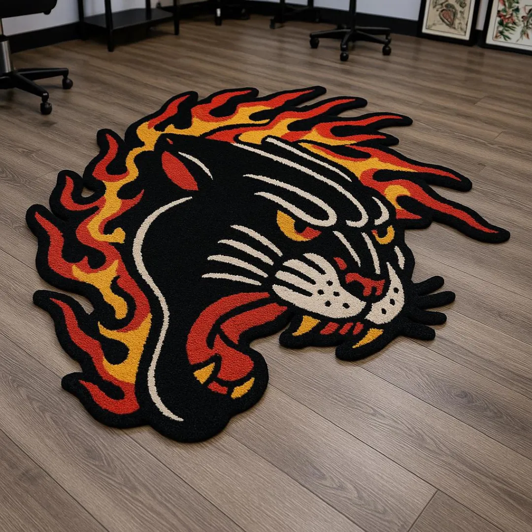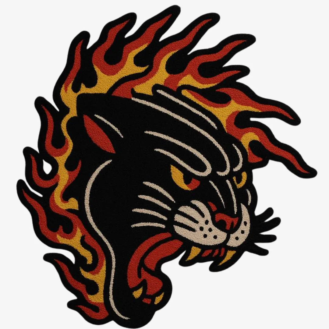 Flame Panther Tattoo Rug