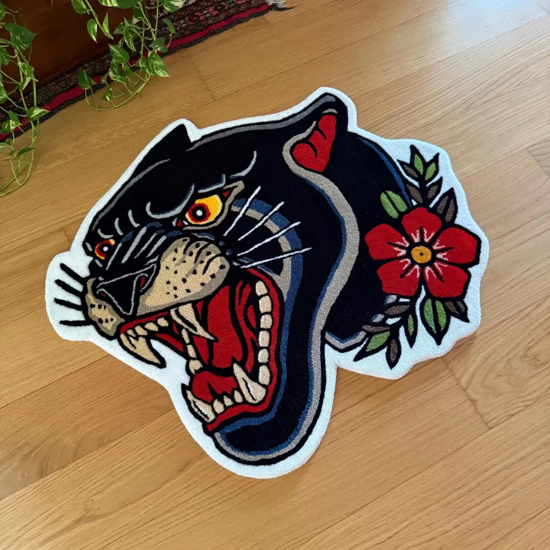 Here are some key features of this tattoo rug;- Design: Inspired by the panther and peony flower.